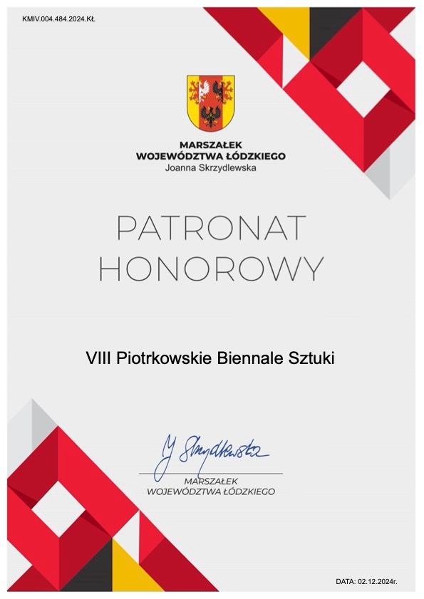 Miło nam poinformować, że 8. Piotrkowskie Biennale Sztuki zostało objęte Honorowym Patronatem Marszałek Województwa Pani Joanny Skrzydlewskiej.