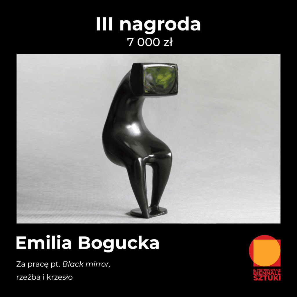 Za piękną rzeźbiarską kompozycję posiadającą siłę prostego i jednocześnie zastanawiającego  znaku, w którego wnętrze chcemy zajrzeć. Ustawione przez artystkę przy tej rzeźbie krzesło prowokuje, by usiąść na nim i w spokoju zobaczyć swoje odbicie. Całość tworzy sytuację metaforycznego spotkania oraz przenikania się dwóch rzeczywistości – człowieka i świata cyfrowego.